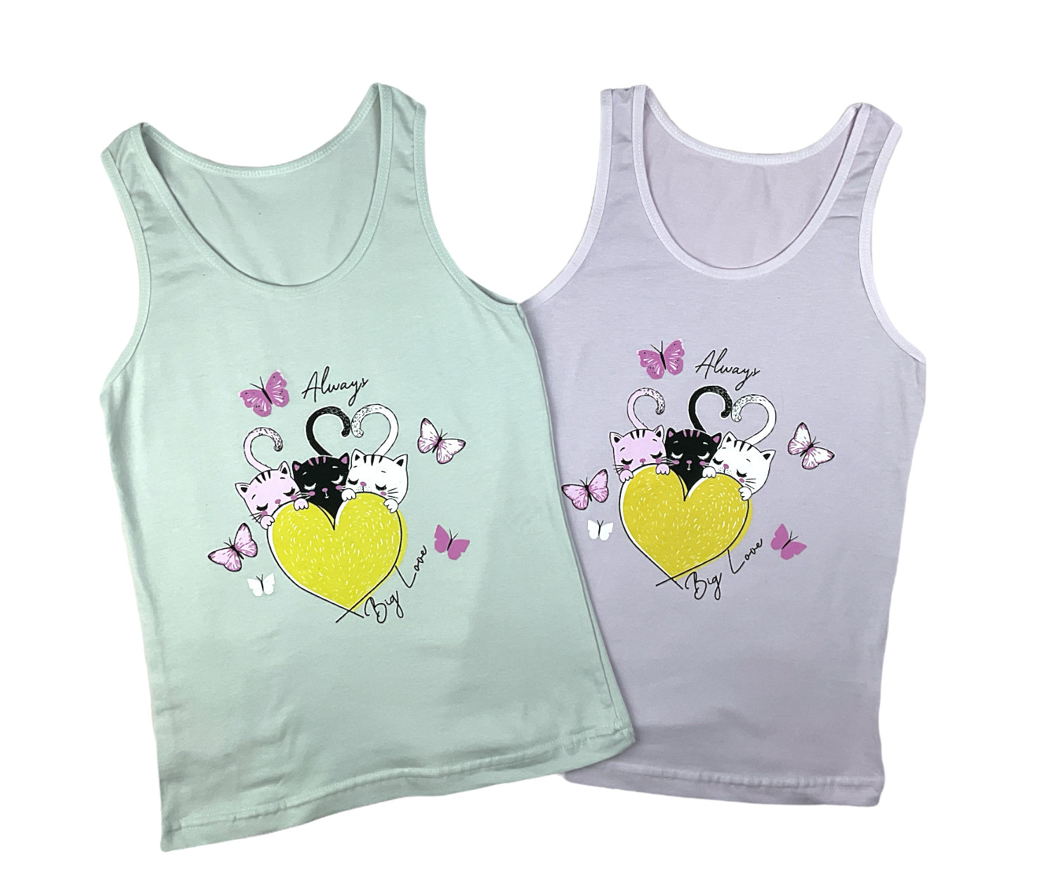 5er Set Mädchen Unterhemden - Katzen - Bunt